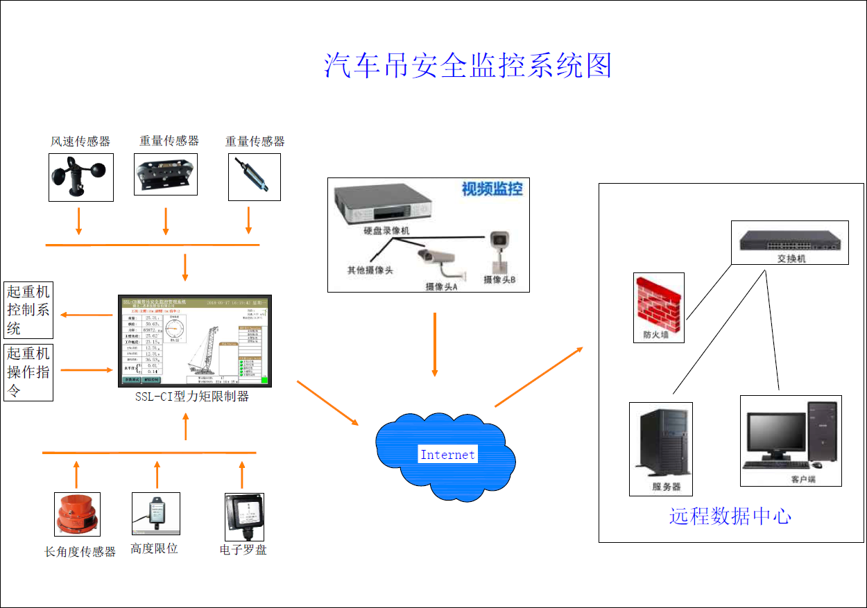 本次方案使用的是湖北三思科技股份有限公司自主研發(fā)的SSL-CI型汽車吊安全監(jiān)控管理系統(tǒng)。
