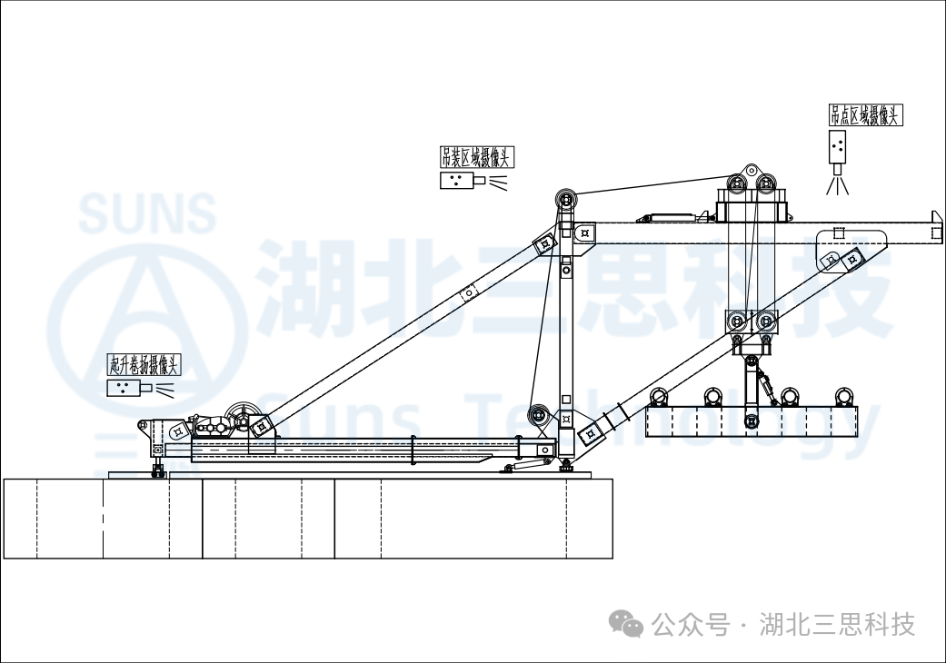 視頻監(jiān)控系統(tǒng)監(jiān)測(cè)橋面吊的卷?yè)P(yáng)狀態(tài)、吊點(diǎn)區(qū)域、吊裝區(qū)域,視頻顯示器放置于駕駛室中或者主機(jī)電箱內(nèi),給駕駛員帶來(lái)更加寬廣的操作視野,提高了橋面吊操作便捷性。
